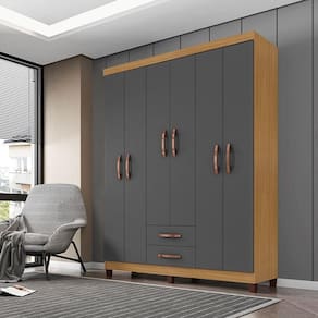Guarda Roupa Casal Mogi 6 Portas Carvalho Americano Grafite - Incorplac