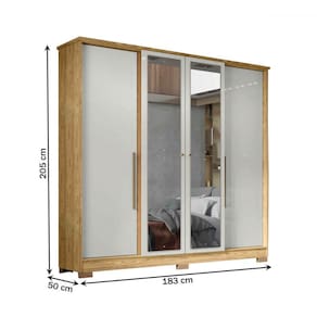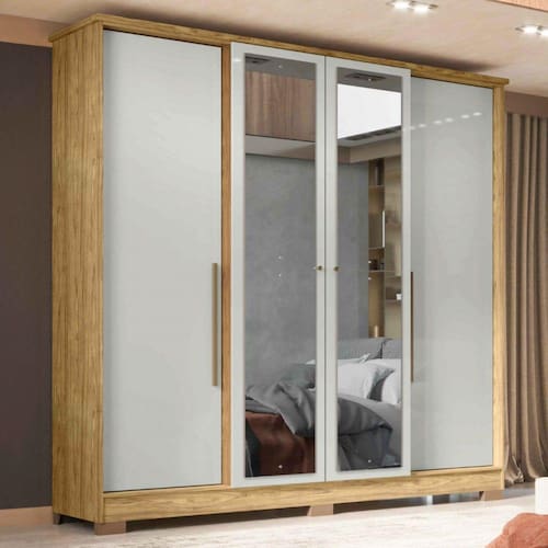 O(a) Guarda-Roupa Casal Monaco 4 Portas 2 Gavetas com Espelho Marrocos/Off White - Mx Móveis é produzido em MDP na escala de brilho Semi-Brilho, e possui um grau de dificuldade de montagem: Médio.