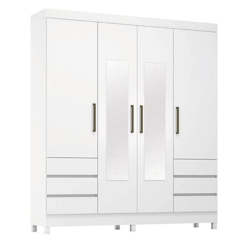 Guarda Roupa Casal Mônaco 4 Portas com Espelho Branco Brilho - Demobile