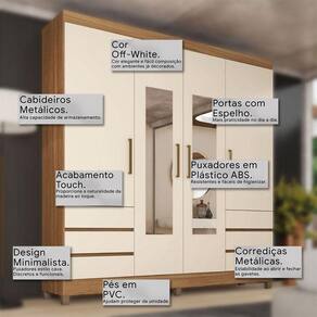 Guarda Roupa Casal Mônaco Ambiente 4 Portas com Espelho Amendola Off White - Demobile