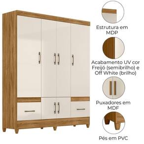 Projetado para atender às necessidades do dia a dia, o Guarda-Roupa Casal MS912 oferece espaço e modernidade. Estrutura em MDP (15/ 12 mm) e acabamento em pintura UV. Composto por portas com dobradiças metálicas, cabideiro interno (alumínio), prateleiras e gavetas com corrediças metálicas. Produto com dupla opção de montagem: pés em PVC ou sapatas plásticas (2 mm) conforme preferência do cliente. Este produto será entregue em 02 volumes.