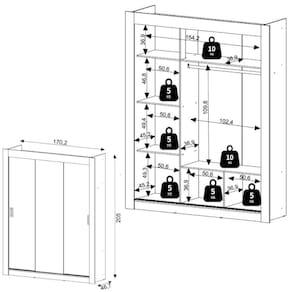 Dimensões do Produto Montado: Altura: 205cm | Largura: 170cm | Profundidade: 46,7cm *Você pode consultar as medidas detalhadas na imagem técnica do produto.