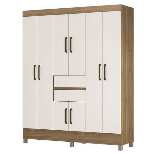 Guarda Roupa Casal Munique 8 Portas E 2 Gavetas Amêndola/off White - Demóbile Amêndola/off White
