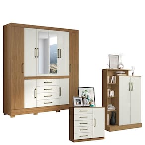 Guarda Roupa Casal Nápole 2045149 com Armário Multiuso Florença 2000199 e Cômoda Sapateira Milão 2014145 Atacama Off White - Aramóveis