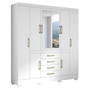 Guarda Roupa Casal Nápole 2045149 e Armário Multiuso 2000191 e Cômoda Londres Branco - Aramóveis