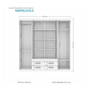 Guarda Roupa Casal Nápoles 8.4 8 Portas 4 Gavetas - Santos Andirá - Branco