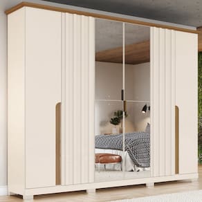 O(a) Guarda-Roupa Casal Napoli com Espelho 6 Portas 6 Gavetas Off White/Natural - Henn é produzido em MDP na escala de brilho Fosco, e possui um grau de dificuldade de montagem: Médio.