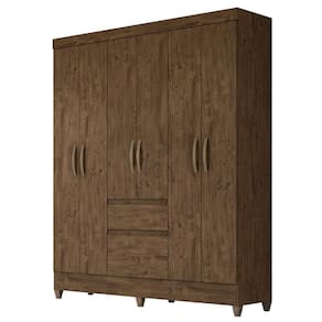 Guarda Roupa Casal New Cuba com Espelho e Cômoda Venus com Pés Castanho Wood Flex - Moval