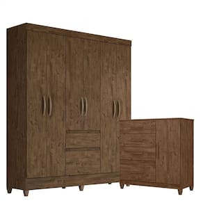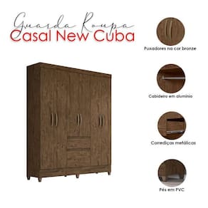 Guarda Roupa Casal New Cuba e Cômoda Venus com Pés Castanho Wood - Moval