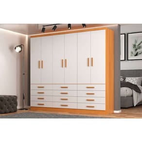 que tal o guarda-roupa new monaco? o guarda-roupa new monaco é a escolha perfeita para quem busca espaço e elegância no quarto. com estrutura em mdp e cabideiro em madeira, ele oferece durabilidade e resistência para acomodar todas as suas roupas e acessórios- o acabamento em laca confere um toque de sofisticação, tornando o ambiente ainda mais bonito. enquanto isso, as 6 portas e 12 gavetas são ideais para um casal, proporcionando espaço amplo e bem dividido para todas as peças de vestuário. Marca: Modern