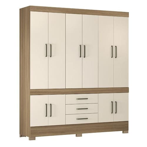 Guarda Roupa Casal New Murano 10 Portas E 3 Gavetas Amêndola/off White - Demóbile Amêndola/off White