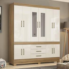 O Guarda-Roupa New Murano possui divisões e compartimento bem distribuídos oferecendo compartimentos exclusivos para vários pares de sapatos, maleiro espaçoso e prateleira. Gavetas externas com deslize perfeito e pés em PVC que facilitam a limpeza do piso ao redor do produto. Possui puxadores super elegantes na cor bronze permitindo que você personalize o seu ambiente deixando-o cada vez mais elegante.