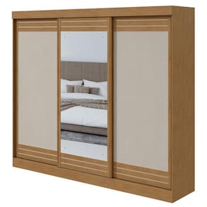 Guarda Roupa Casal Nice 3 Portas 2 Gavetas Amêndoa Clean Off White Flex com Espelho – Lopas