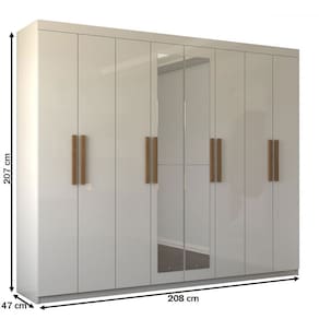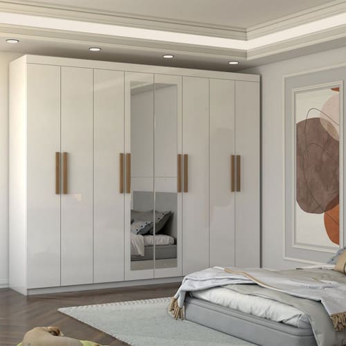 O(a) Guarda-Roupa Casal Nirvana Plus 8 Portas 4enbsp;gavetas com Espelho Branco - Loja é produzido em MDP na escala de brilho Fosco e Semi-Brilho, e possui um grau de dificuldade de montagem: Médio.
