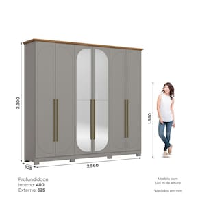 O Roupeiro Nova York Prime foi desenvolvido para o público que busca elegância e qualidade. Possui 06 portas com usinados de baixo relevo, 06 gavetas com corrediças telescópicas e usinagem para pega, cabideiros e calceiros em alumínio, puxadores em alumínio, dobradiças com amortecimento, chapéu com molduras de 25cm, ripas laterais, frentes e tampos das gavetas na cor da caixa. Seu amplo espaço interno oferece uma organização eficiente e prática para suas roupas. Acabamento da Prateleira: Pintura Texturizada UV Escala de Brilho da Prateleira: Fosco Possui Cabideiros: Sim Acabamento da Gaveta: Pintura Texturizada UV Possui Organizador de Gaveta: Não Acabamento da Porta: Pintura Texturizada UV Escala de Brilho da Porta: Fosco Material do Puxador da Porta: Alumínio Altura do Espelho: 101 cm Altura dos Pés: 5 cm Altura Máxima dos Pés: 5.0000 Ambiente Principal: Quarto codigo_ean: 7900288102324 Complexidade da Montagem: Alta: deve ser montado por um montador especializado Cor: Cinza/Marrom Cor do Produto: Cinza/Marrom Cor Interna: Trama Escala de Brilho: Fosco Espessura da Estrutura (mm): 15 mm Espessura das Portas (mm): 15 mm Espessura das Prateleiras (mm): 15 mm Espessura do Espelho: 3 mm Espessura do Fundo (mm): 3 mm Espessura do Fundo das Gavetas (mm): 3 mm Formato do Espelho: Retangular Guarda-Roupa Suporta Até (kg): 90 kg Itens Inclusos: 1 Guarda-Roupa + Instrução de Montagem Largura do Espelho: 33 cm Linha ou Coleção: Americano Prime Manual de Montagem e Instalação: https://product-hub-prd.madeiramadeira.com.br/983342/documents/e981c01f-c212-4fd8-83de-dbc1fb5853062747625326617422396309403.pdf Marca: Espresso Móveis Material da Gaveta: MDF Material da Porta: MDF Material da Prateleira: MDP Material dos Pés: ABS Material Principal: MDF/MDP modular: Não Montagem Flex: Não Necessita Montagem: Sim Origem do Produto: Nacional Peso: 186 kg Peso Máximo por Gaveta: 3 kg Peso Máximo por Prateleira: 8 kg Possui Calceiros: 01 Possui Espelho: Sim Possui Pés: 08 Possui Portas: Sim Possui Prateleiras: Sim Produto Montado: Sim Quantidade de Cabideiros: 01 Cabideiro Quantidade de Espelho: 04 Espelhos com Tamanhos Iguais Quantidade de Gavetas: 06 Gavetas Quantidade de Portas com Espelhos: 2 Portas com Espelho Quantidade de Prateleiras: 07 Prateleiras Recomendações de Uso, Manutenção e Limpeza: Para limpeza de seu móvel, use uma flanela limpa e seca. Não utilize produtos químicos que possam danificar o produto. Sistema de Montagem: Parafusos e Cavilhas Suporta Até (kg): 90 kg Tipo de Corrediça da Gaveta: Metálica Telescópica Tipo de Dobradiça/Corrediça da Porta: Metálica Tipo de Fixação do Espelho: Parafusos Tipo de Gaveta: Interna Tipo de Guarda-Roupa: Casal Tipo de Puxador da Gaveta: Não Possui Tipo de Puxador da Porta: Externo