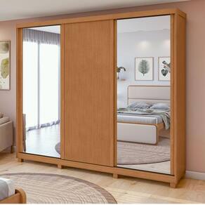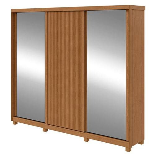 Guarda Roupa Casal Ollie 3 Portas Amêndoa Clean com Espelho Glass e Pés ? Lopas