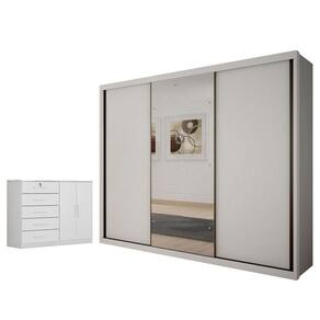 Guarda Roupa Casal Palazzo com Espelho e Cômoda Seul Neve - Novo Horizonte
