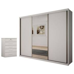 Guarda Roupa Casal Palazzo com Espelho e Gaveteiro Suiça Neve - Novo Horizonte