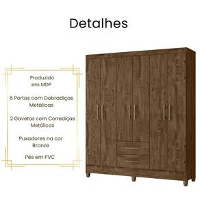 Guarda Roupa Casal Panamá 6 Portas Castanho Wood Moval - Marrom