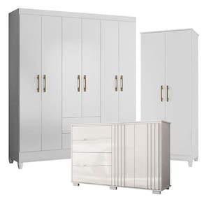 Guarda Roupa Casal Panamá com Cômoda Texas e Armário Multiuso Jade Branco Brilho– Moval
