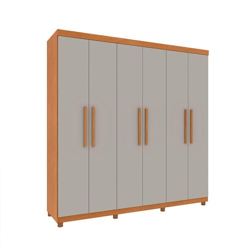 Guarda-Roupa Casal Paradiso com Pés 6 Portas 4 Gavetas Cinamomo e Off White 219 cm - Marrom