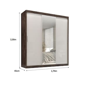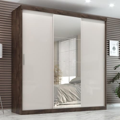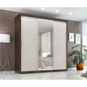 Guarda Roupa | Roupeiro com 3 portas de correr fabricadas em MDP de 15mm garantindo uma maior resistência contra empenamentos. Conta com trilhos inferior em alumínio e contém um sistema soft de rolagem que garante um melhor deslize das portas. O Armário possui 2 gavetas internas com corrediças metálicas de alta resistência. Prateleiras, gavetas, divisórias e estrutura do móvel feitos totalmente em MDP de 12mm de alta resistência garantindo a qualidade e durabilidade do produto. Possui acabamento Touch Alto-Relevo ou Alto Brilho UV e Semibrilho parte interna. Esse é o Guarda Roupa mais procurado para quarto de casal e solteiro. Tem um design compacto que ao mesmo tempo atende muito bem as reais necessidades de uma ou duas pessoas. A composição de espelhos na porta central deixam o produto glamouroso e esse é seu maior diferencial. Além desses detalhes o item é de fácil montagem.