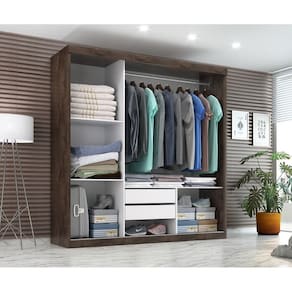 Guarda Roupa | Roupeiro com 3 portas de correr fabricadas em MDP de 15mm garantindo uma maior resistência contra empenamentos. Conta com trilhos inferior em alumínio e contém um sistema soft de rolagem que garante um melhor deslize das portas. O Armário possui 2 gavetas internas com corrediças metálicas de alta resistência. Prateleiras, gavetas, divisórias e estrutura do móvel feitos totalmente em MDP de 12mm de alta resistência garantindo a qualidade e durabilidade do produto. Possui acabamento Touch Alto-Relevo ou Alto Brilho UV e Semibrilho parte interna. Esse é o Guarda Roupa mais procurado para quarto de casal e solteiro. Tem um design compacto que ao mesmo tempo atende muito bem as reais necessidades de uma ou duas pessoas. A composição de espelhos na porta central deixam o produto glamouroso e esse é seu maior diferencial. Além desses detalhes o item é de fácil montagem.