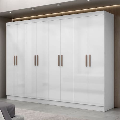 O(a) Guarda-Roupa Casal Paris 8 Portas 4 Gavetas Branco - Maxel é produzido em MDP na escala de brilho Brilho, e possui um grau de dificuldade de montagem: Médio.