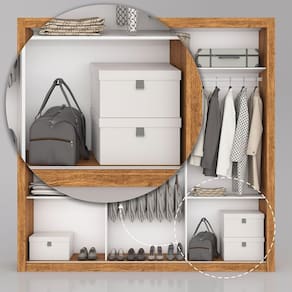 Os maleiros sao perfeitos para acomodar edredons, cobertores, travesseiros, malas e toalhas, enquanto as prateleiras sao ideais para organizar roupas de cama, itens de higiene, bolsas e acessorios. Os cabideiros sao resistentes e nao envergam com o peso de roupas mais pesadas, como sobretudos e ternos.