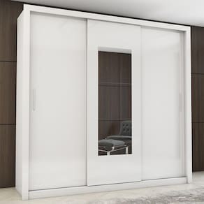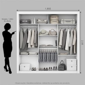 Guarda-roupa Paula com 3 portas de correr, 2,08m de altura, 1,855m de largura e 0,46m de profundidade, 4 prateleiras e 3 cabideiros, deixa o produto com uma divisão funcional capaz de proporcionar ao cliente acomodar todas as suas roupas de maneira mais organizada e com maior visibilidade. Nos maleiros cabem certinhos edredons, cobertores, travesseiros, malas, toalhas, bolsas, entre outros. Os três cabideiros, além de resistentes, não envergam com o peso dos moletons, ternos, sobretudos, camisas e acessórios. Prateleiras são ideias para colocar roupas de cama e de banho, perfumes, kits de maquiagem, caixinhas com acessórios e bolsas menores. Estrutura do produto em mdp.