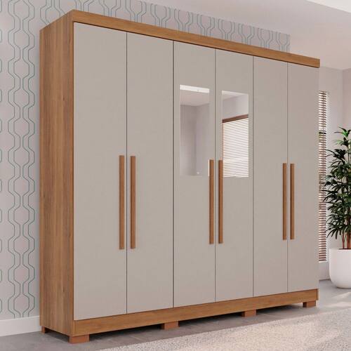 O(a) Guarda-Roupa Casal Pinheiro 6 Portas 2 Gavetas com Espelho Cinamomo/Off White - Pnr Móveis é produzido em MDP na escala de brilho Brilho, Fosco e Semi-Brilho, e possui um grau de dificuldade de montagem: Médio.