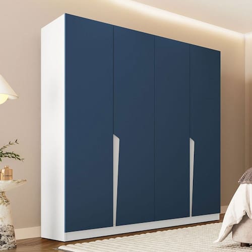 O(a) Guarda-Roupa Casal Porto 4 Portas 4 Gavetas Branco/Azul - Politorno é produzido em MDF e MDP na escala de brilho Semi-Fosco, e possui um grau de dificuldade de montagem: Médio.