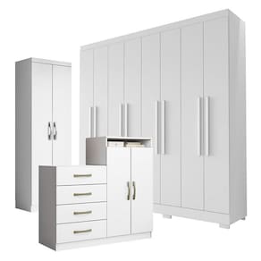 Guarda Roupa Casal Porto 8 Portas 4 Gavetas com Cômoda Sapateira Londres e Armário Multiuso 2 portas New Branco Brilho – Aramóveis