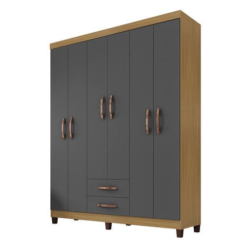 Guarda Roupa Casal Porto Belo 6 Portas 2 Gavetas Carvalho Grafite Clique Chique