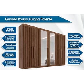 Guarda Roupa Casal Potente c/6 Gavetas e 6 Portas c/ 4 Ripadas c/2 Espelhos Peroba/Off White - Europa