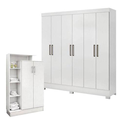 Guarda Roupa Casal Prático e Armário Multiuso Elite Branco Brilho - Demóbile