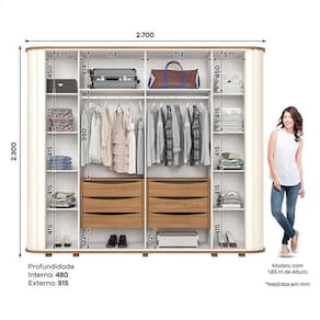 Guarda Roupa Casal Premium 6 Portas Off White Nature Henn