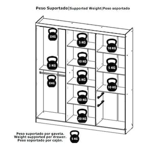 - 3 Prateleiras removíveis e 5 tampos fixos