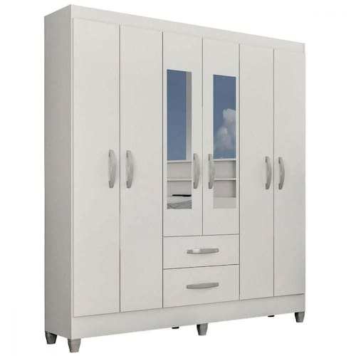 Guarda-roupa Casal Real 6 Portas 2 Gavetas Espelho Atualle Branco Brilho