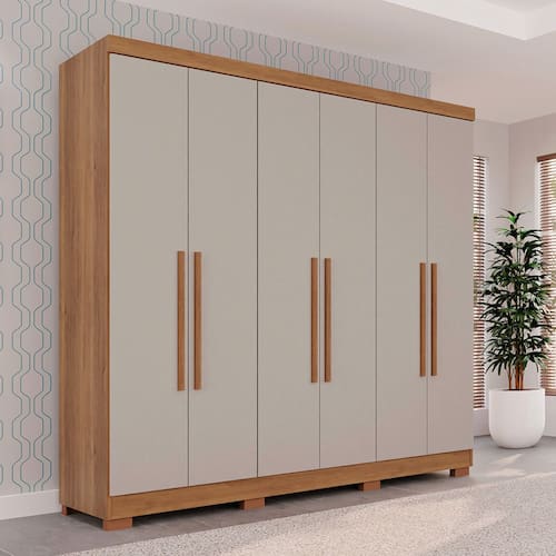 Este guarda-roupa proporciona amplo espaço para organizar roupas, sapatos e acessórios de maneira eficiente e funcional.