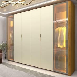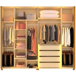 Guarda Roupa Casal Reflecta LED Innova Naturale Off White - Gelius - Marrom