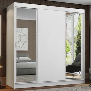 São três portas de correr com trilhos em alumínio e deslizamento suave, que otimizam o espaço do quarto, sem atrapalhar no momento da abertura. Além disso, duas portas contam com espelhos que ampliam o ambiente e são muito úteis no dia a dia.