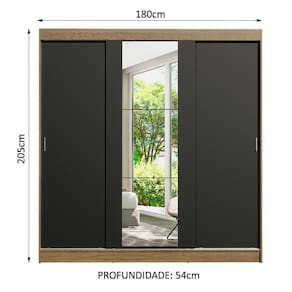 Medidas totais do guarda-roupa: 205 cm de altura x 180 cm de largura x 54 cm de profundidade.