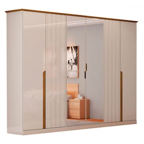O(a) Guarda-Roupa Casal Rio com Espelho 6 Portas 6 Gavetas Off White/Natural - Loja é produzido em MDP na escala de brilho Brilho, e possui um grau de dificuldade de montagem: Médio.