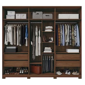 Um quarto moderno precisará de um móvel diferenciado, traz a combinação perfeita ótima disposição interna e modernidade, esse móvel faz parte de uma linha de produtos que está disponível no mercado, sendo assim uma linha completa para formar seu ambiente e para total conforto, modernidade e durabilidade, as portas centrais conta com um lindo vidro reflecta que é uma tendência e charme, tornando o móvel moderno, ele é confeccionado em MDP de 15mm e MDF para maior resistência, possui várias repartições para armazenar roupas e objetos. Materiais de 1ª qualidade que respeitam o meio ambiente. Acabamento da Prateleira: Pintura UV Escala de Brilho da Prateleira: Fosco Possui Cabideiros: 04 Acabamento da Gaveta: BP Melamínico Escala de Brilho da Gaveta: Fosco Material do Puxador da Gaveta: MDP Possui Organizador de Gaveta: Não Acabamento da Porta: BP Melamínico Escala de Brilho da Porta: Fosco Material do Puxador da Porta: MDF Acabamento dos Pés: Laca Altura dos Pés: 5 cm Ambiente Principal: Quarto codigo_ean: 7909903398296 Complexidade da Montagem: Média: pode ser montado por mais de uma pessoa e/ou necessite de maior conhecimento para montagem Cor: Havana/Cinza Cor do Produto: Havana/Cinza Cor Flex: Não Cor Interna: Havana Escala de Brilho: Fosco Gaveta com Chave: Não Guarda-Roupa Suporta Até (kg): 66 kg Itens Inclusos: 1 Guarda Roupa, Manual de Montagem e Kit Ferragens Linha ou Coleção: Suburban Manual de Montagem e Instalação: https://product-hub-prd.madeiramadeira.com.br/846952/documents/fb2f7b6f-e911-4eb9-b8e2-22be539816f62641eqroupeirocxcmdediCAod.pdf Material da Gaveta: MDP Material da Porta: MDP Material da Prateleira: MDP Material dos Pés: ABS Material Principal: MDP Medida de Cada Item: 234,2cm x 268cm x 57cm modular: Não Montagem Flex: Não Necessita Montagem: Sim Origem do Produto: Nacional Peso: 236,3 kg Peso Máximo por Gaveta: 4 kg Peso Máximo por Prateleira: 8 kg Possui Calceiros: Não Possui Espaço para Vestidos Longos: Sim Possui Espelho: Não Possui Espelho Interno: Não Possui Ganchos: Não Possui iluminação: Não Possui Nichos: Não Possui Painel de TV: Não Possui Pés: 08 Possui Portas: Sim Possui Prateleiras: Sim Possui Sapateira: Não Produto Montado: Sim Quantidade de Gavetas: 04 Gavetas Quantidade de Prateleiras: 11 Prateleiras Recomendações de Uso, Manutenção e Limpeza: Limpar com pano macio levemente umedecido e em seguida pano macio seco. Não utilizar produtos abrasivos (lixas, esponjas) e/ou produtos a base de solventes (thinner, aguarrás). Sapatas Niveladoras: Sim Sistema de Montagem: Minifix, Cavilhas e Parafusos Suporta Até (kg): 66 kg Tipo de Corrediça da Gaveta: Metálica Telescópica Tipo de Dobradiça/Corrediça da Porta: Metálica Tipo de Gaveta: Interna Tipo de Guarda-Roupa: Casal Tipo de Puxador da Gaveta: Embutido Tipo de Puxador da Porta: Externo Ean: 7909903398296