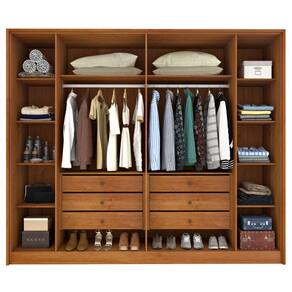 Particularidades do guarda-roupa: Características: - Produto em MDP e MDF; - 6 gavetas com corrediças telescópicas; - Portas laterais ripadas; - Cabideiros em alumínio; - Corrediças metálicas; - Puxadores externo em MDF; - Puxador interno em PVC; - Costas inteiriças;
