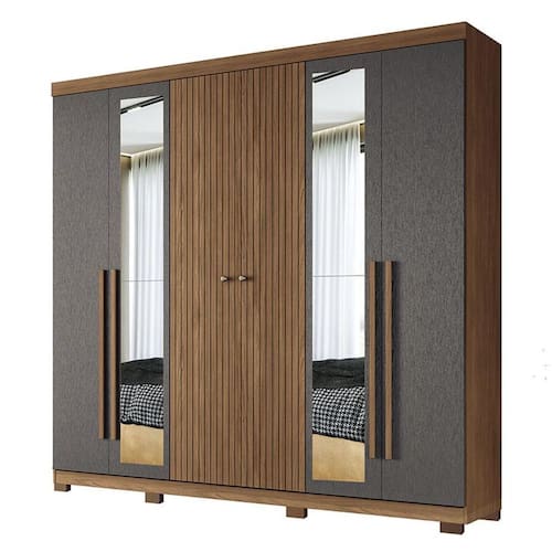 Guarda Roupa Casal Ripado 6 portas Buriti Jatobá Grafite com espelho e pés Acetinado - Santos Andirá
