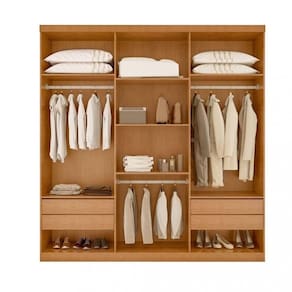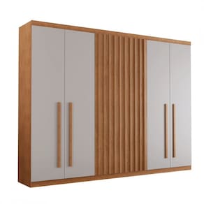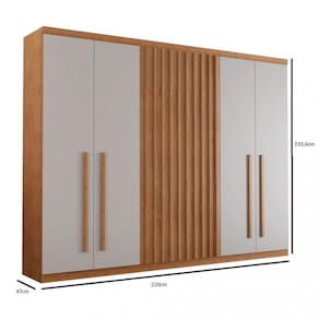 Características: 2 Cabideiros em alumínio 1 Calceiro em aluminio 4 Gavetas 6 Portas Acabamento em pintura UV Corrediças telescópicas Dobradiças metálicas de pressão Estrutura 100 em MDF Gaveta suporta peso de até 5kg Porta com detalhe ripado Puxadores em madeira