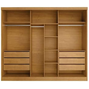 Este Guarda-roupa você vai amar! Possui divisões funcionais que possibilita uma melhor organização, ideal para dar o ar delicado e sofisticado para o ambiente que você merece! Fabricado em 100% MDF, sendo a estrutura em MDF de 15mm, laterais do roupeiro com encabeçamento de MDF de 25mm, 6 gavetas com corrediças telescópicas, amplo espaço interno para que você possa organizar seus pertences, roupas de cama, vestuários e calçados, possui 6 prateleiras internas, 3 cabideiros em alumínio, espaço para roupas longas, puxadores de madeira. Vamos deixar seu quarto muito mais charmoso!, aproveite!