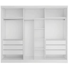 Este Guarda-roupa você vai amar! Possui divisões funcionais que possibilita uma melhor organização, ideal para dar o ar delicado e sofisticado para o ambiente que você merece! Fabricado em 100% MDF, sendo a estrutura em MDF de 15mm, laterais do roupeiro com encabeçamento de MDF de 25mm, 6 gavetas com corrediças telescópicas, amplo espaço interno para que você possa organizar seus pertences, roupas de cama, vestuários e calçados, possui 6 prateleiras internas, 3 cabideiros em alumínio, espaço para roupas longas, puxadores de madeira. Vamos deixar seu quarto muito mais charmoso!, aproveite!